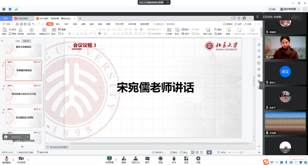 总结宝贵经验,从交流中学习。对标定级环节,侯婷向大家介绍了“对标定级”的评分标准和评分方式,三位老师根据自评表及述职情况对各团支部现场打分。来自本、硕、博各班的团支书分别从班子运转、团员管理、活动开展等方面进行了述职,分享长期工作积累的心得体会。本科团支书重点介绍了团支部开展的特色活动,充分展现了团员同学丰富的组织生活。硕博团支书则重点陈述了工作开展的方法,以及团支部与党支部的紧密对接。