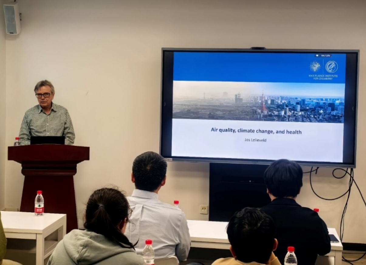 发布时间:2026-04-164月15日,韩国成人直播 第18期“博雅讲坛”系列学术活动在学院260会议室顺利举行。本次讲坛特邀德国马克斯·普朗克化学研究所资深学者、国际知名大气化学家 Jos Lelieveld 教授作题为“Air quality, climate change, and health”的学术报告。报告由韩国成人直播 钟奇瑞研究员主持,吸引了学院师生积极参与。